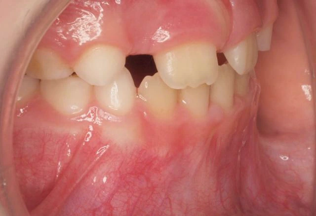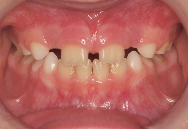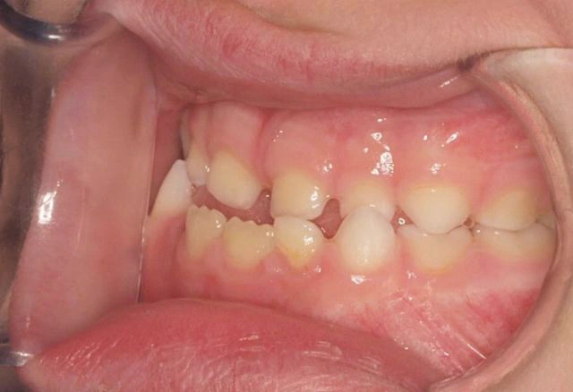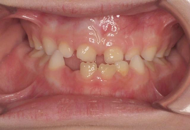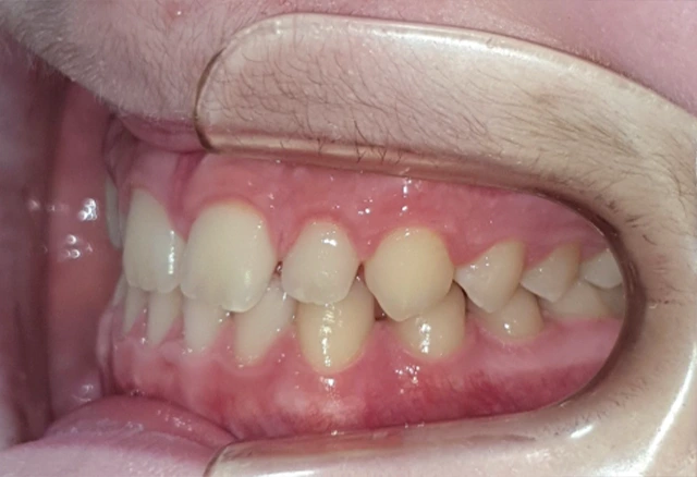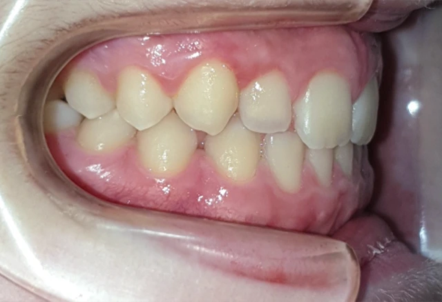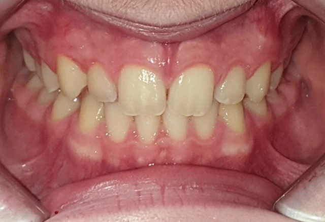 La 1ª fase se inició con un aparato de disyunción fija con máscara facial con el que se corrigieron los problemas de mordida cruzada anterior. Tras 18 meses de tratamiento, comenzamos la 2ª fase con ortodoncia con brackets que duró otros 18 meses. Así conseguimos una correcta alineación de los dientes y una sonrisa perfecta.