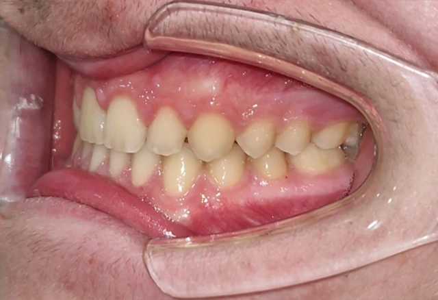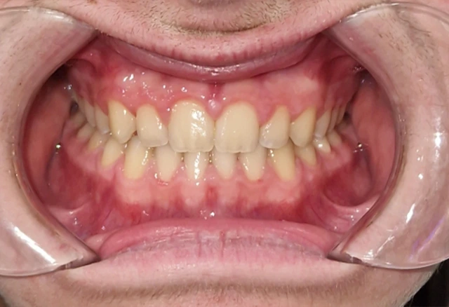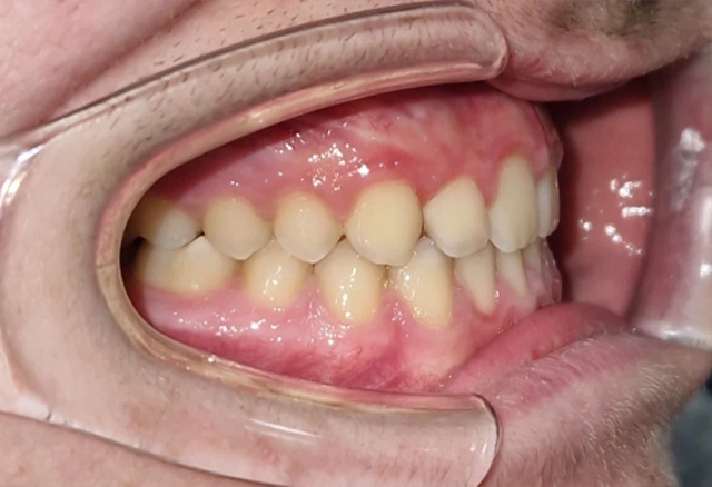 Javier es un paciente que ha necesitado un tratamiento de ortodoncia en 2 fases para corregir la mordida cruzada anterior y mejorar su sonrisa.